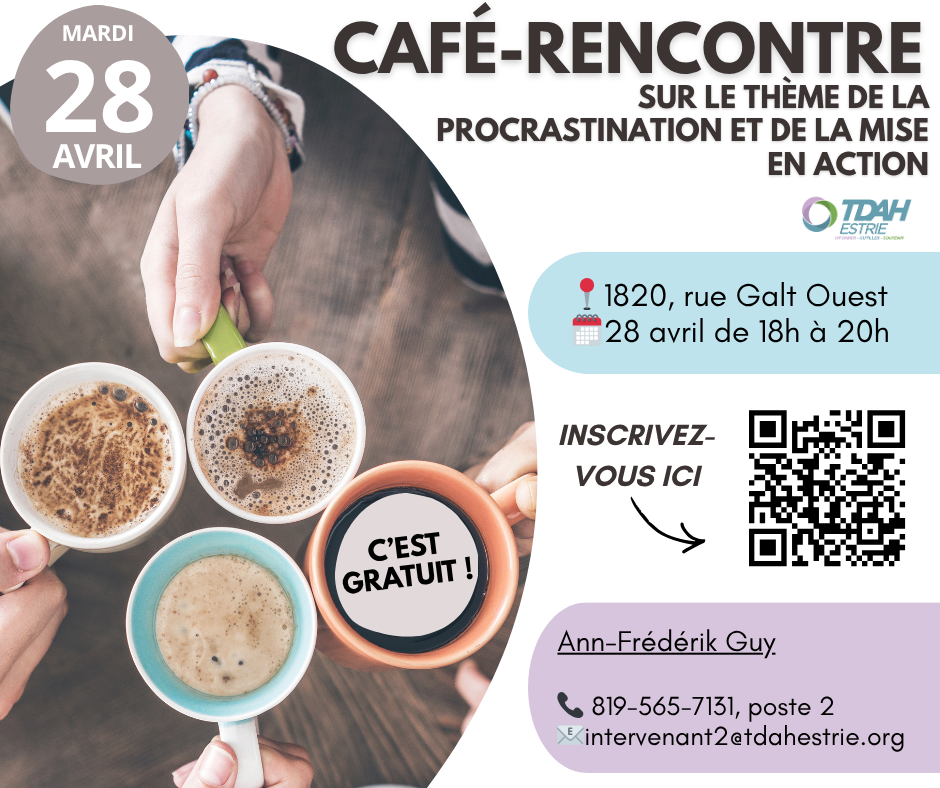C’est le 3e café-rencontre! Celui-ci aura comme thème : la procrastination et la mise en action !